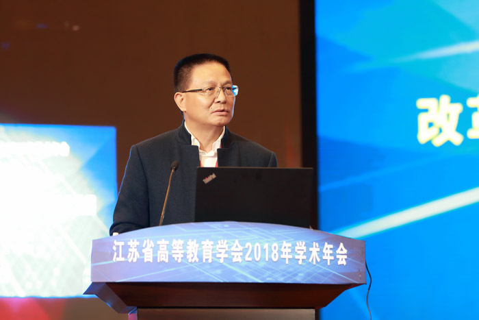 16日下午第二阶段举行学术报告环节,学会特邀教育部教育发展研究中心战略发展部主任马陆亭教授和江苏省高等教育学会学术委员会副主任、南京师范大学博士生导师胡建华教授进行学术报告,江苏省高等教育学会副会长、泰州学院校长兼党委副书记徐向明教授主持了特邀学术报告。马教授结合教育工作大会精神,探讨了新时代大学的责任与发展。胡建华教授以新时代高等教育发展的“三个面向”破题,深入浅出、鞭辟入里。两位知名专家的报告引领了学术研究前沿、启发了理论研究和实践探索的灵感。